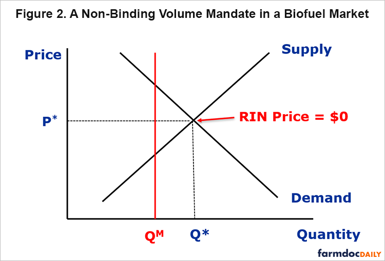 5. Here is a non-binding mandate (they do exist). Key takeaway: non-binding mandate results in a zero RIN price and competitive markets sets the demand for the biofuel.