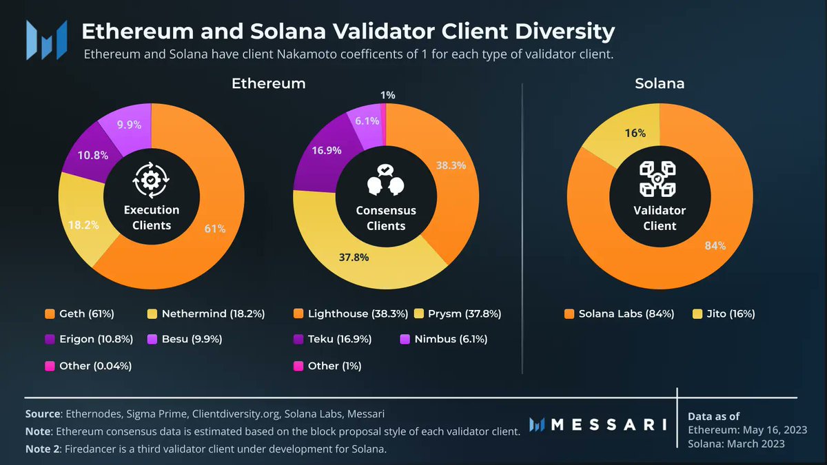Networks like @avax, @Cardano, and @NEARProtocol have single-client implementations, leading to concentration.