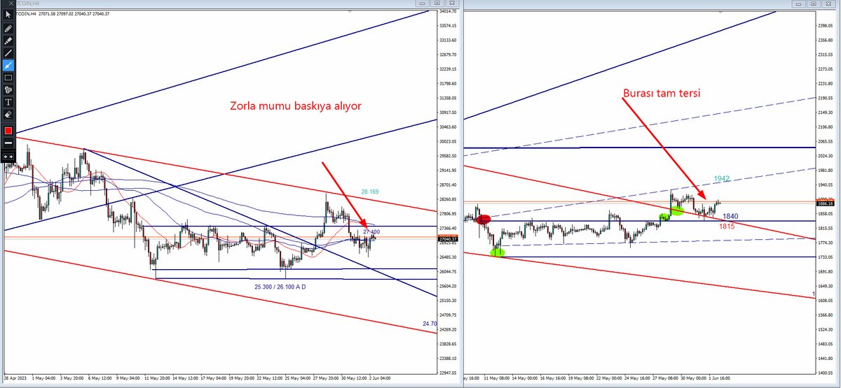 Hafta sonu giriyor araya ! Alıcının satıcının dengesini bozmak için. Onun için BTC yi aşağı baskılıyor