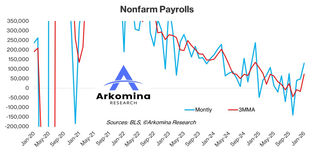 Jan nonfarm payrolls came in at +130K after +48K in Dec.
