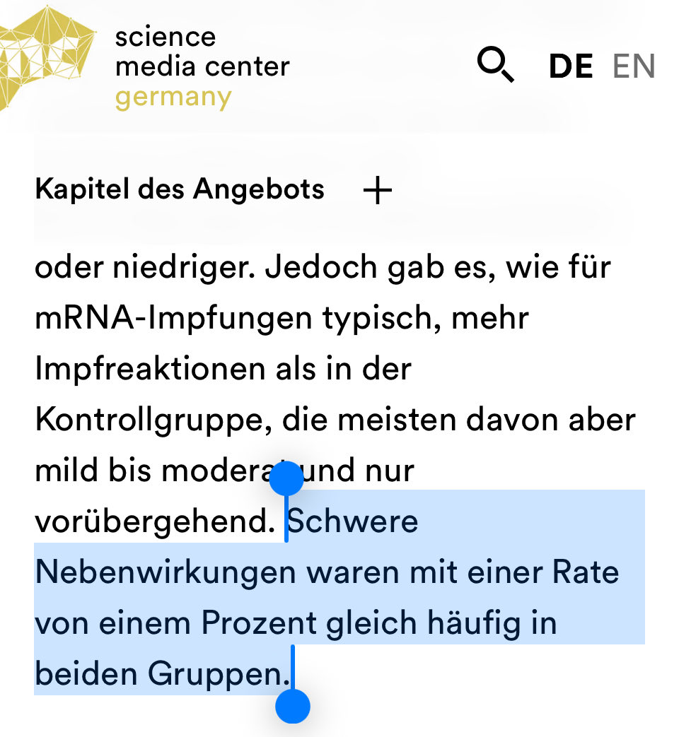 🔥 Brisant: Inakzeptable 1% (sic!) SCHWERE Nebenwirkungen in BEIDEN Gruppen (Quelle: SCIENCEMEDIACENTER).