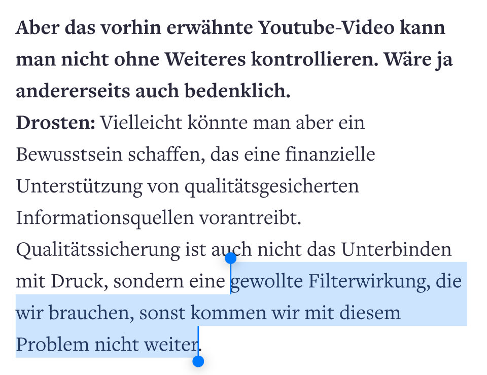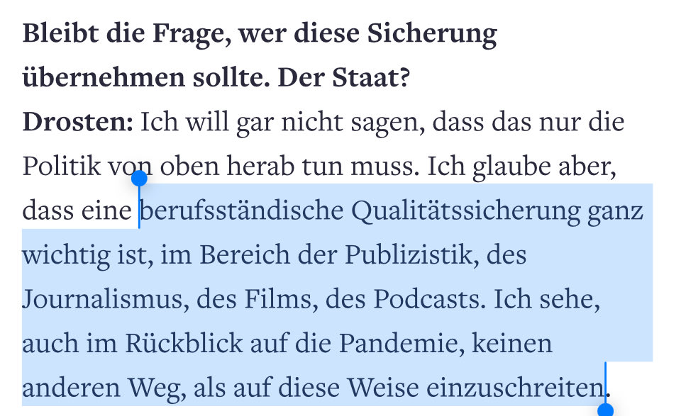 „Er vertritt eine Sichtweise, die gärt, seit die Bundesregierung auf die Corona-Pandemie mit harten … Regeln reagiert hat. Er erhebt schwere Vorwürfe, manche wirken fundiert, andere könnte man auch auf den Wochenenddemos hören, die von Verschwörungstheoretikern als Bühne genutzt werden. …