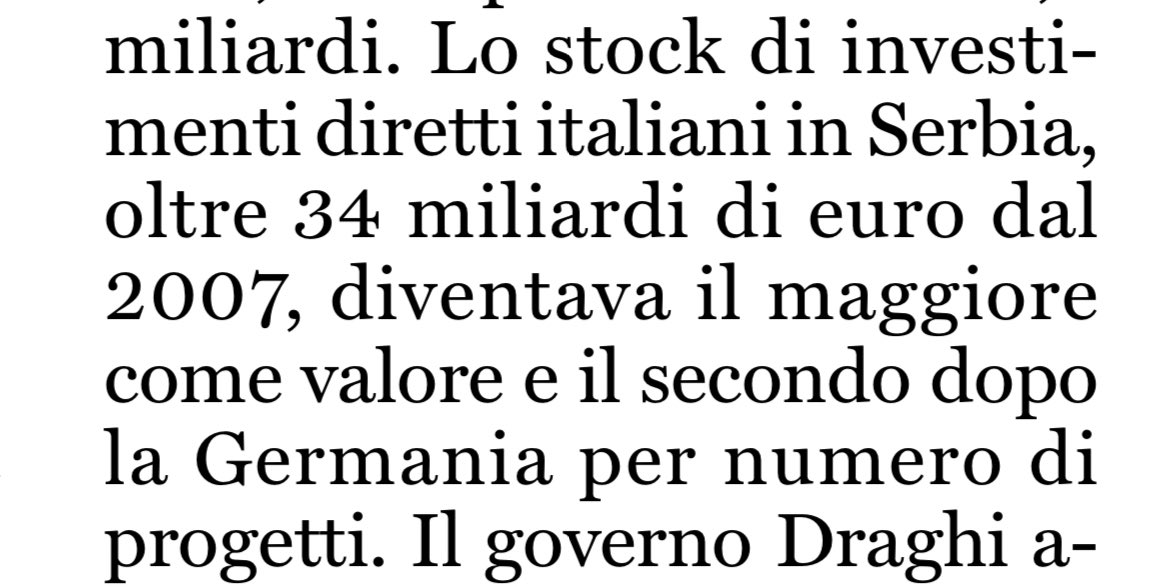 L’altro dato di Orsini, quello dello stock di investimenti diretti italiani in Serbia superiore a 34 miliardi dal 2007, è invece completamente inventato. Ed è grossolanamente fuori scala: 34 miliardi è forse il totale (di tutto il mondo) degli investimenti esteri in Serbia. 6/n