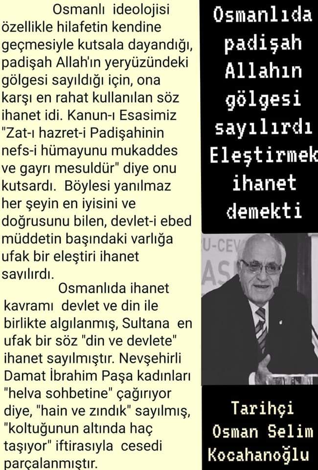 7- ...her yeri TEKFİR sesleri ve taassup salgını kaplamıştır. (Bkz. Madeline C. ZİLFİ, Osmanlı uleması, s.130) Osmanlı/İslam kültüründe yaşanan çağ dışı bu yozlaşmayı elbette Voltaire gibi analiz eden bir Fiozofumuz olmasa da bıçağın...