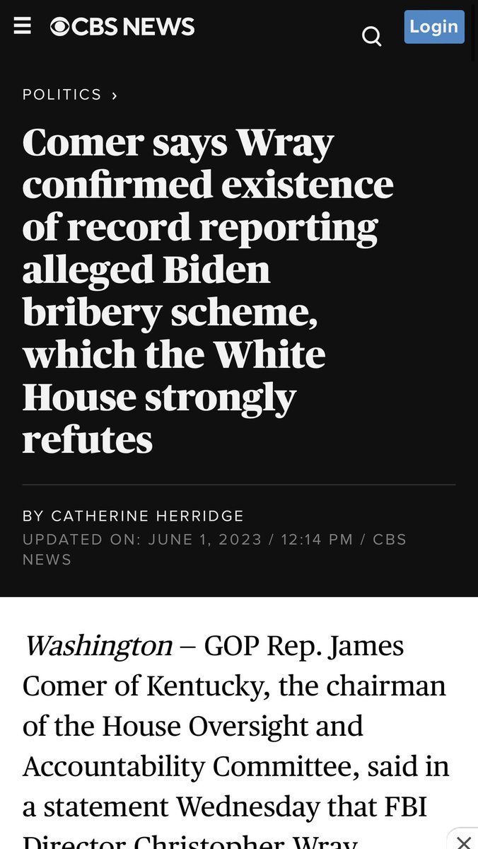 The FBI and DoJ are supposed to be nonpartisan. But while DoJ is releasing info relating to its investigation of Trump, it is refusing to let Congress see a document that may show Biden’s involvement in a criminal bribery scheme with a foreign national. It’s a double standard.