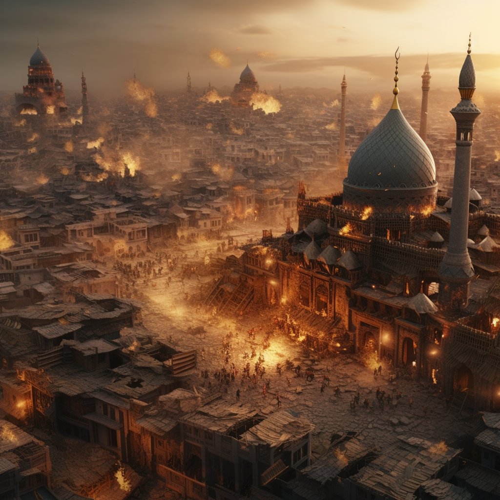 Baghdad was ravaged by immense damage, and the books of wisdom, holding all sciences and arts not found anywhere else in the world, were burned; it was reported that they utilised books to create a bridge of mud and water instead of bricks.
