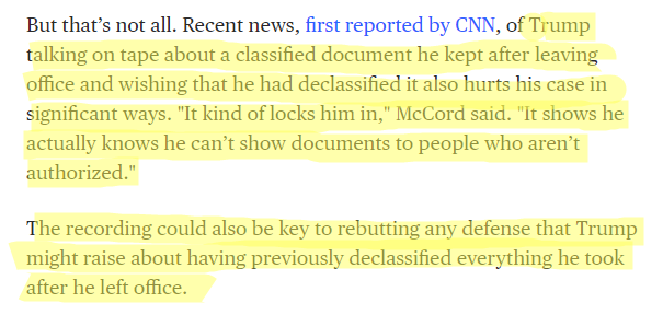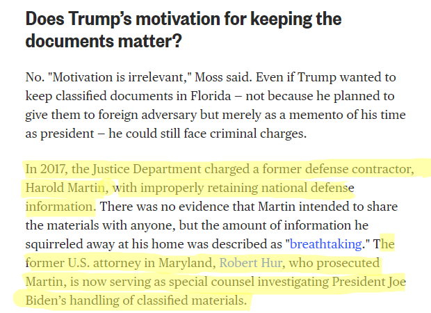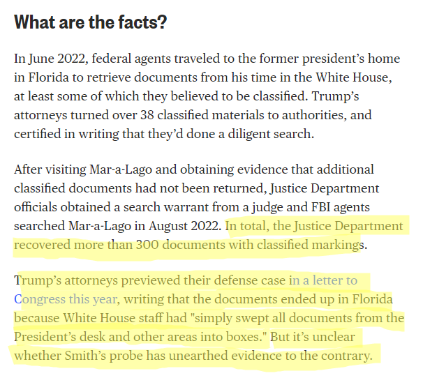 Trump’s attorneys previewed their defense case in a letter to Congress this year, writing that the documents ended up in Florida because White House staff had "simply swept all documents… twitter.com/i/web/status/1…