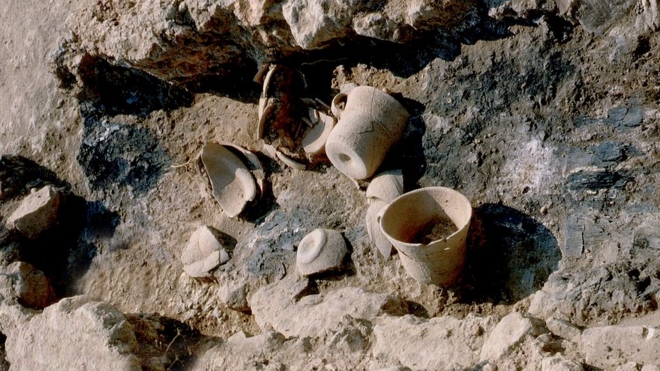 En arqueología es muy difícil encontrarse escenas así. Porque la actividad cotidiana borra sus huellas cada día. Es necesaria una catástrofe para detener la historia. Para congelar el tiempo.->