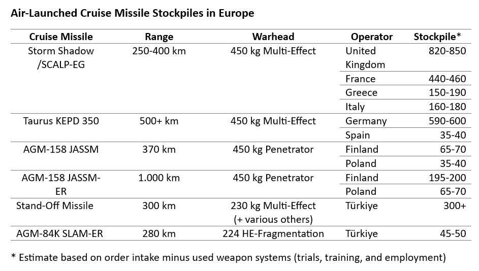 Updated stockpile numbers on air-launched long-range strike weapons that could feasibly be transferred to Ukraine 🇺🇦 on relatively short notice. The estimate is based on order intake minus weapon systems used during trials, training, and employment. 🚀🧵 1/9