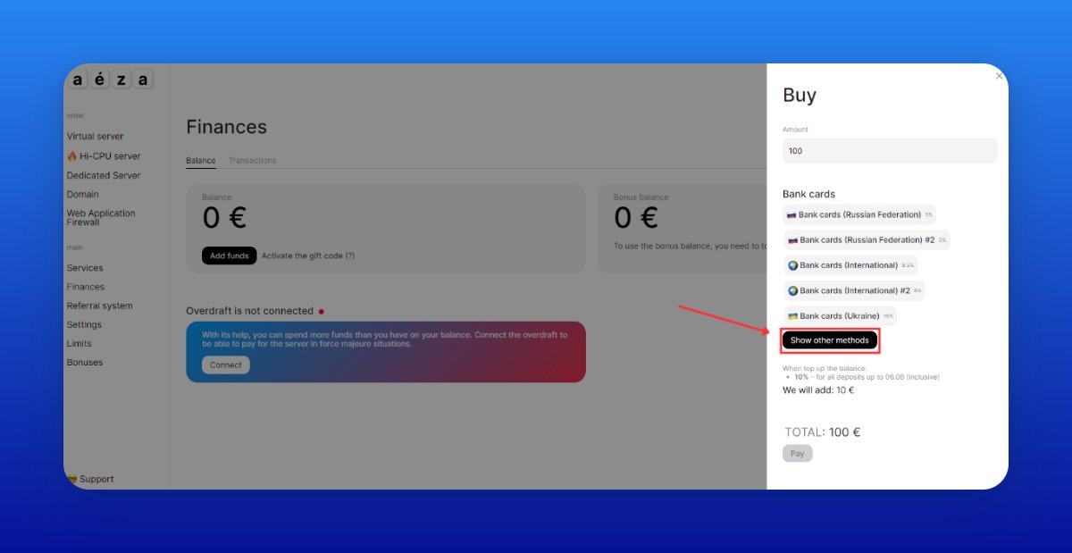 • Go to my.aeza.net/services