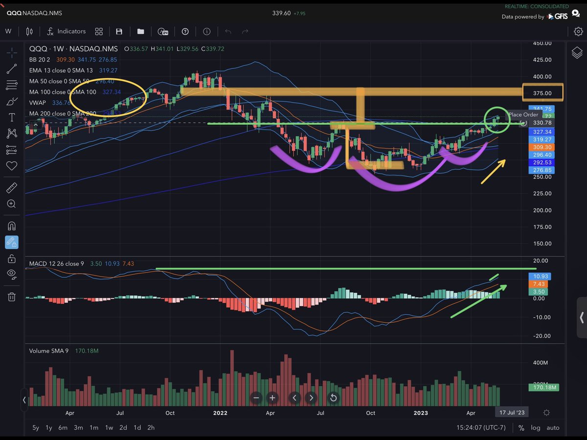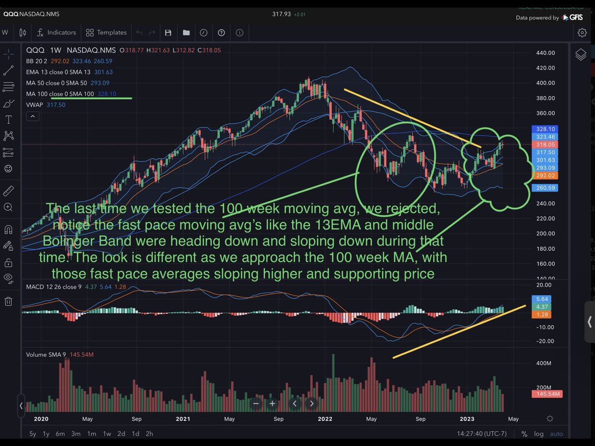 We flattened out the 100 weekly moving avg in $QQQ. We tested it at $328 for a great trade, and then we did as we laid out! We S/R flipped…