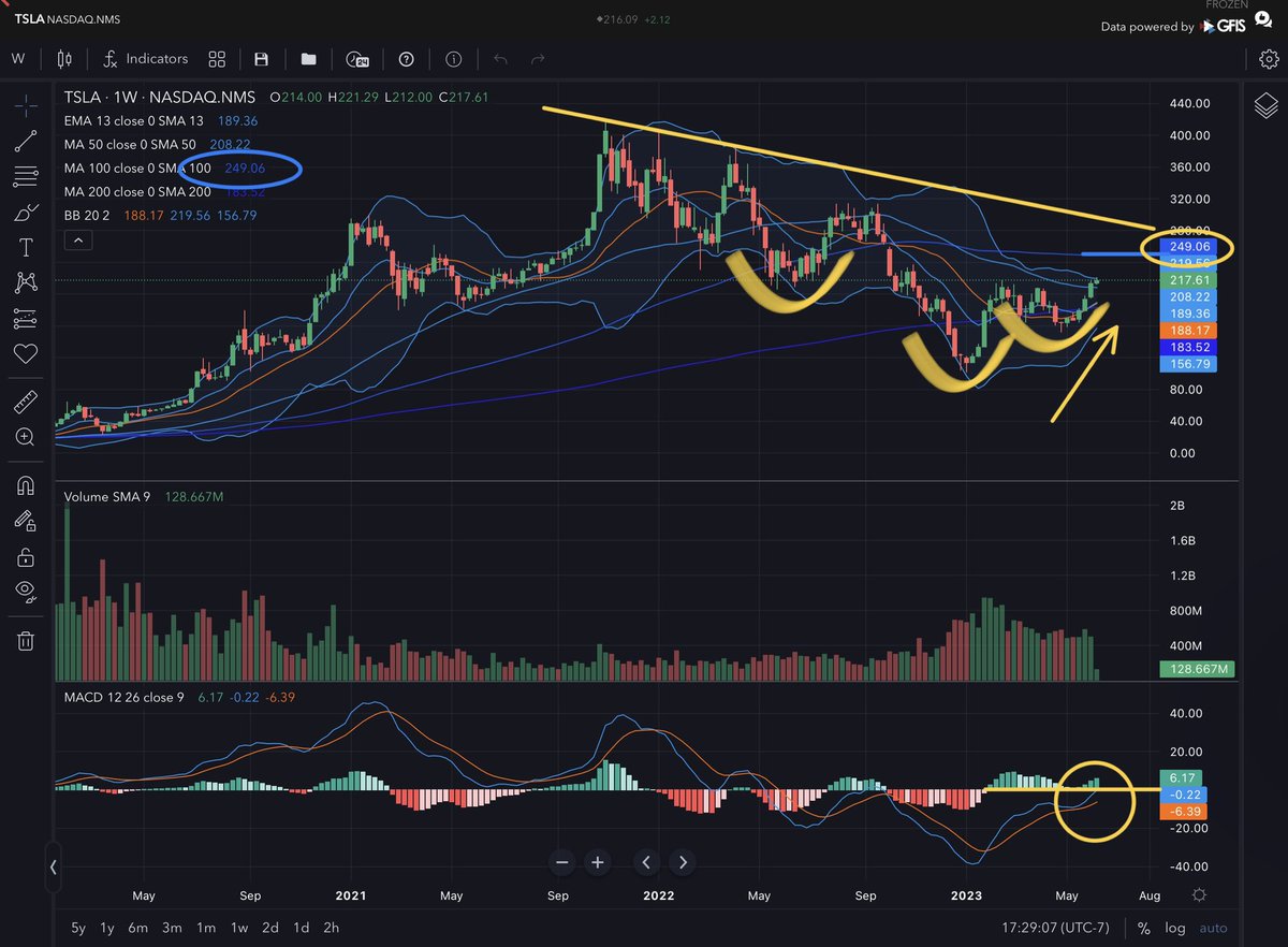 So not only does $TSLA have the trailing seat to the 100 Weekly Simple Moving Avg party 🎉….