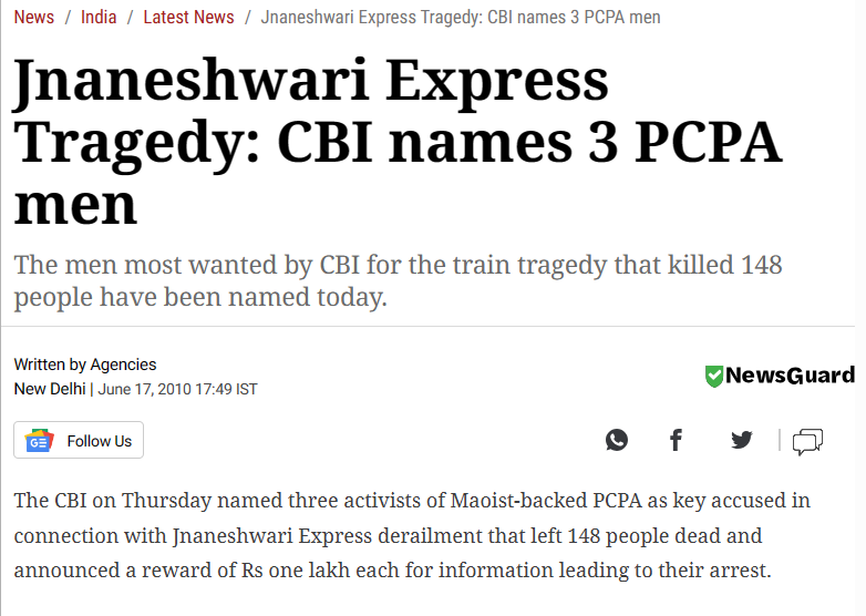 's tweet here. The #CoromandelExpressAccident was unfortunate, but the political vision should be questioned for the mishap. Same way, the Gyaneshwari attack needs to be retold.