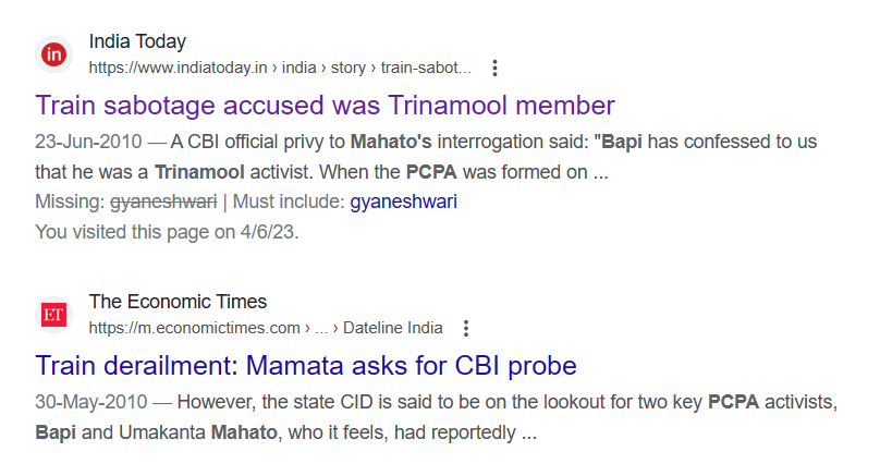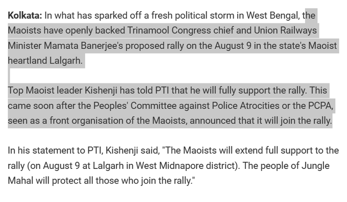 Coming back to Gyaneshwari attack, CBI named Bapi and Umakant Mahto, senior PCAPA activists, and PCPA convenor Asit Mahto as the main accused. Point to be noted: Trinamool was in alliance with the UPA government - a key partner. CBI was Mamata Banerjee's demand.