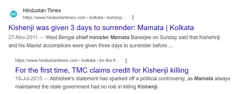 Right after she took defeated the left and took over as CM of West Bengal, she did a U-turn blamed the Maoists instead. That's in Nov 2011. Then in Feb 2012, she did another U-turn and again blamed CPM.