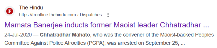 People’s Committee against Police Atrocities (PCAPA) spearheaded a tribal resistance against police at Lalgarh after a landmine blast targeting the convoy of then CM Buddhadeb Bhattacharjee & Steel Minister Ram Vilas Paswan. It was led by one Chhatradhar Mahato, now a TMC leader.