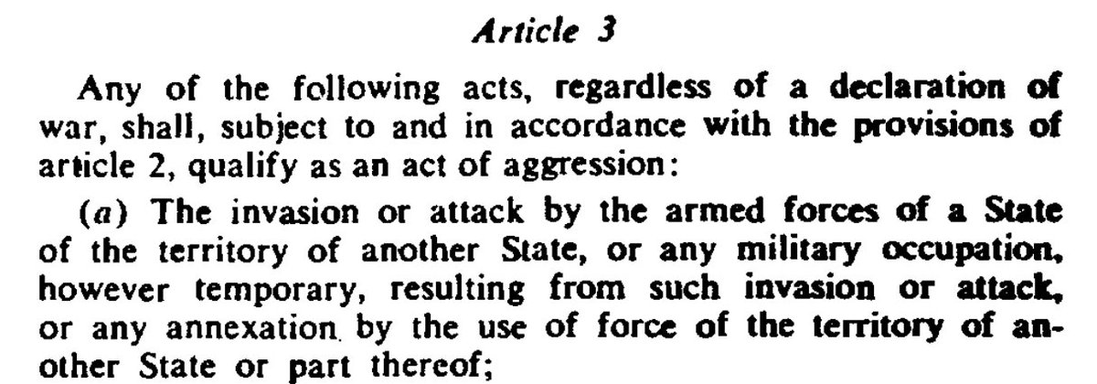 2/6 In reverting to uti possidetis and rejecting Resolution 181, Israel is undercutting the basis of its admission to the @UN, and its duty to comply with the decisions of the Security Council according to Article 25 of the Charter. In May 1949, when it admitted Israel as a Member State of the United Nations, the General Assembly recalled resolution 181 and took note of Israel’s declarations “in respect of the implementation of the said resolution.” Moreover, in November 1967, the Security Council unanimously adopted Resolution 242, which “emphasized the inadmissibility of acquisition of territory by war” and called for the “withdrawal of Israel armed forces from territories occupied in the recent conflict.”