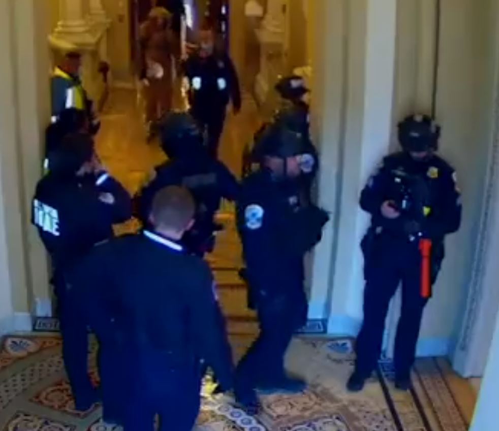 1/ This is the most shocking revelation from the Tucker clips from last night. 11 USCPD officers WATCH the Qanon Shaman, by himself, walk escorted by two officers into, eventually, the Senate Chambers.