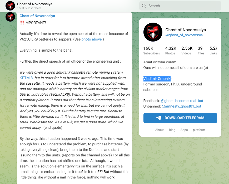 According to Russian milbloggers Andrei Morozov and Vladimir Grubnik, these batteries are very hard to come by in the Russian Federation and more expensive than in Western nations