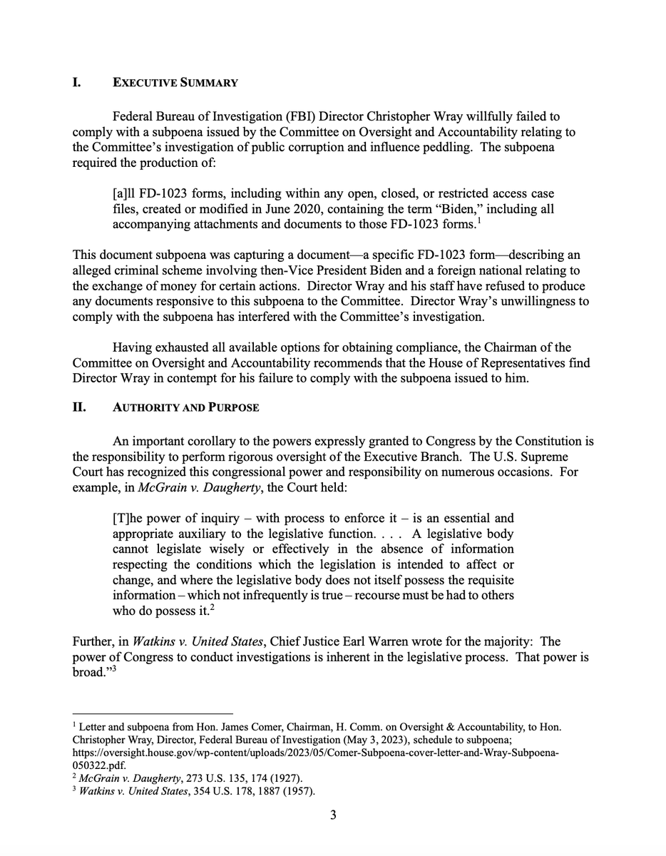 I just introduced the Resolution to hold FBI Director Wray in contempt of Congress.