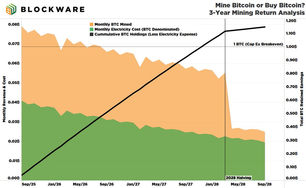 Over 3 years, this miner would mine an estimated 1.147 BTC — This is factoring in electricity expenses AND the 2028 halving 📉