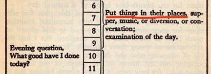 "Put things in their places" is perhaps the most underrated part of the routine.
