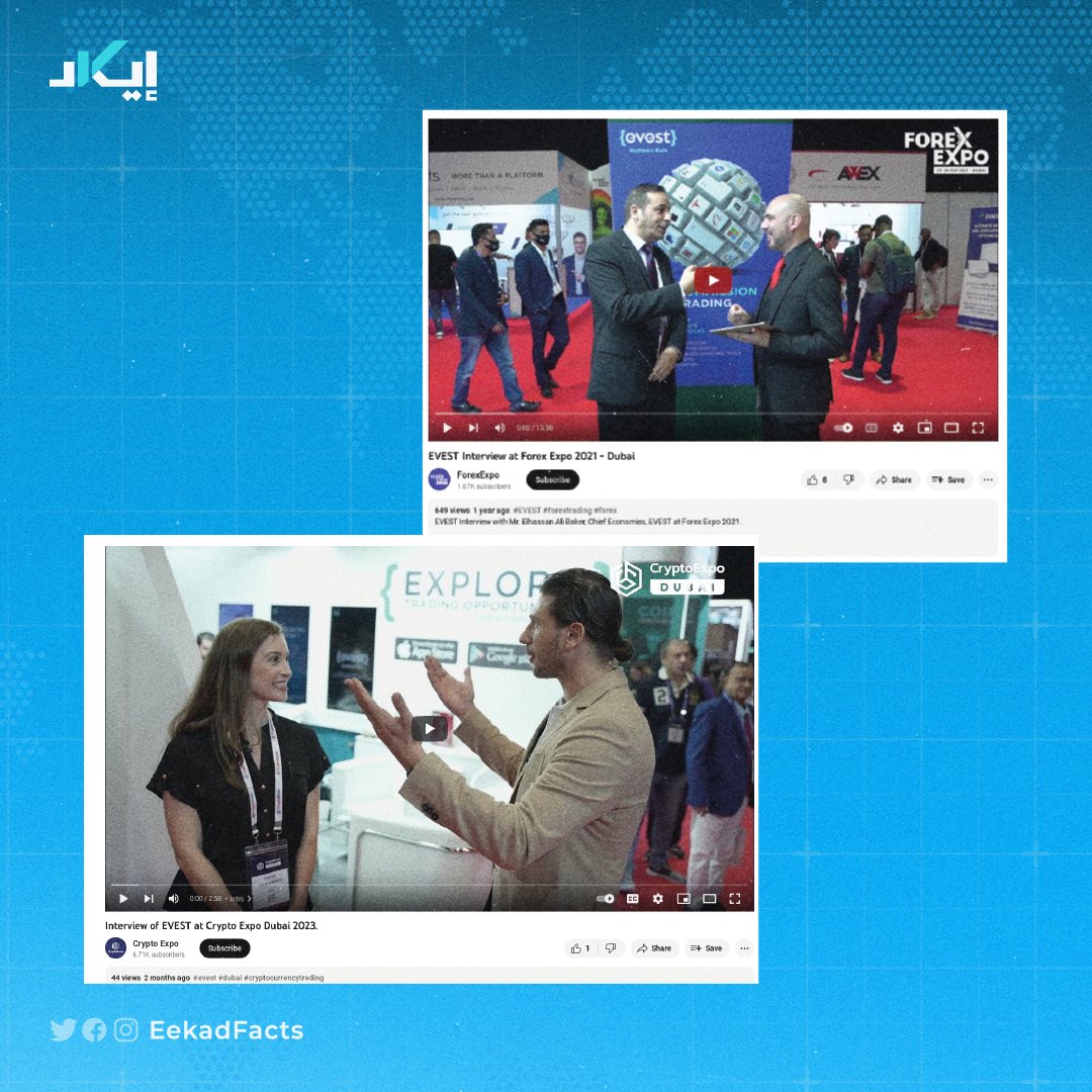 🔻 بدأ التحقيق عند ملاحظة محققي إيكاد موجة إعلانات كثيفة تروج لمنصات استثمار وتداول، أبرزها شركتا "Evest" وMister" Markets Pro" اللتان ظهرتا خلال الأشهر الماضية بشكل زخم في يوتيوب وتويتر وفيسبوك.