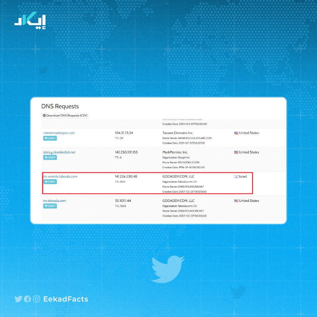 🔻 رابط الإعلان يقوم بتمرير بيانات المستخدم الذي تم اختراق جهازه على عدة خوادم حول العالم، أحدها موجود في روسيا، وآخر في إسرائيل.