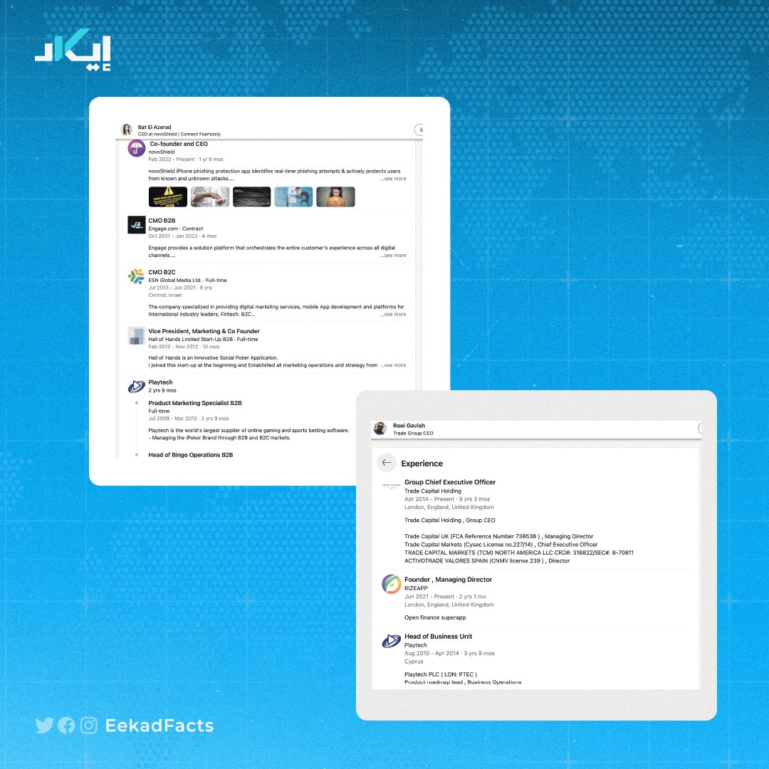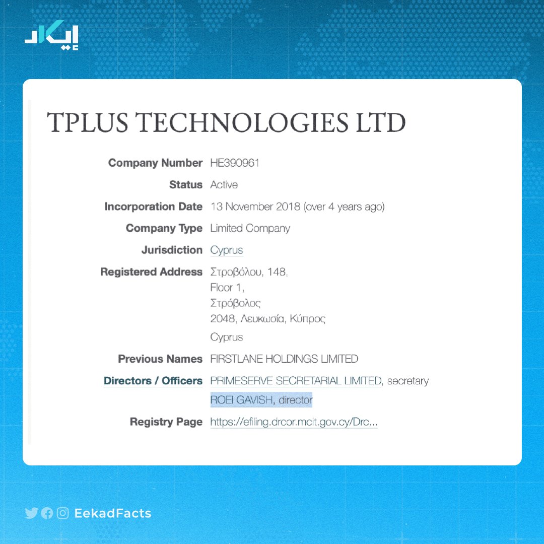 🔻 فمثلًا شركة "Tplus Technologies" أسسها "Roei Gavish" وكلا الشركتين تقدمان الخدمات المالية ذاتها على الإنترنت وتعملان معًا.