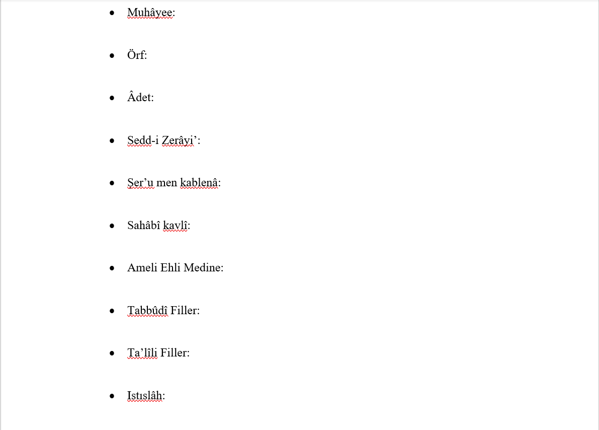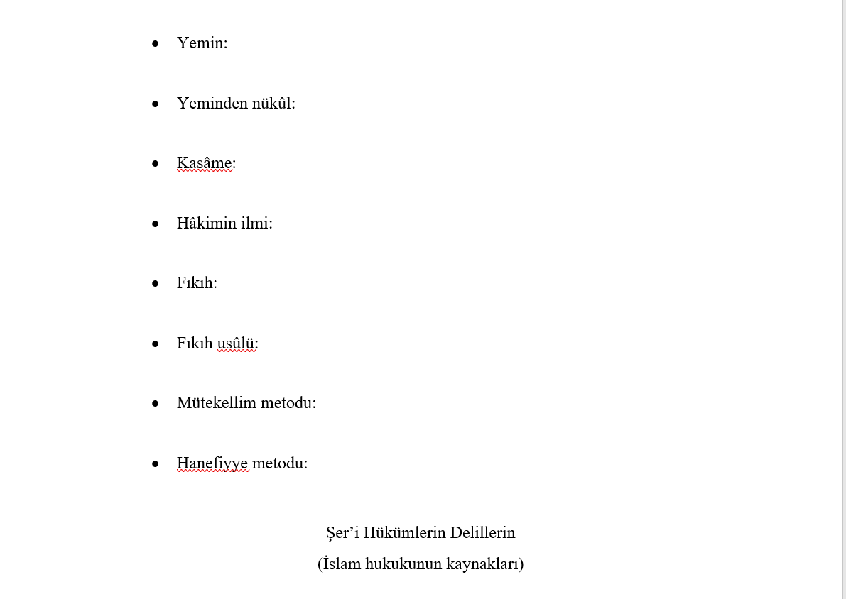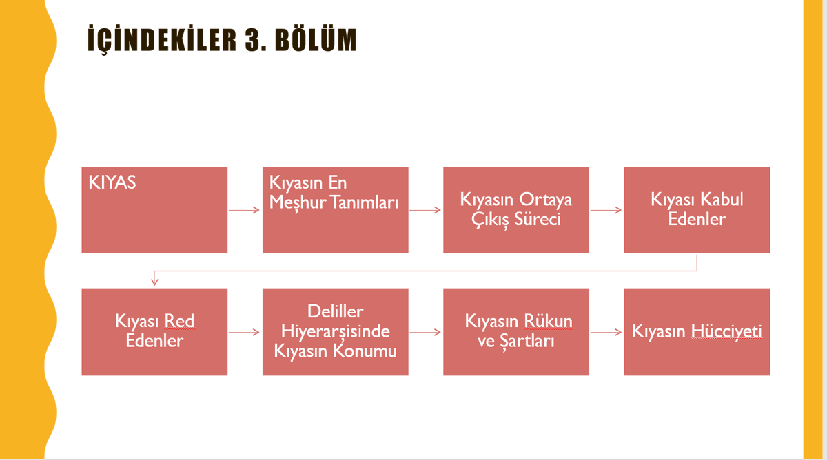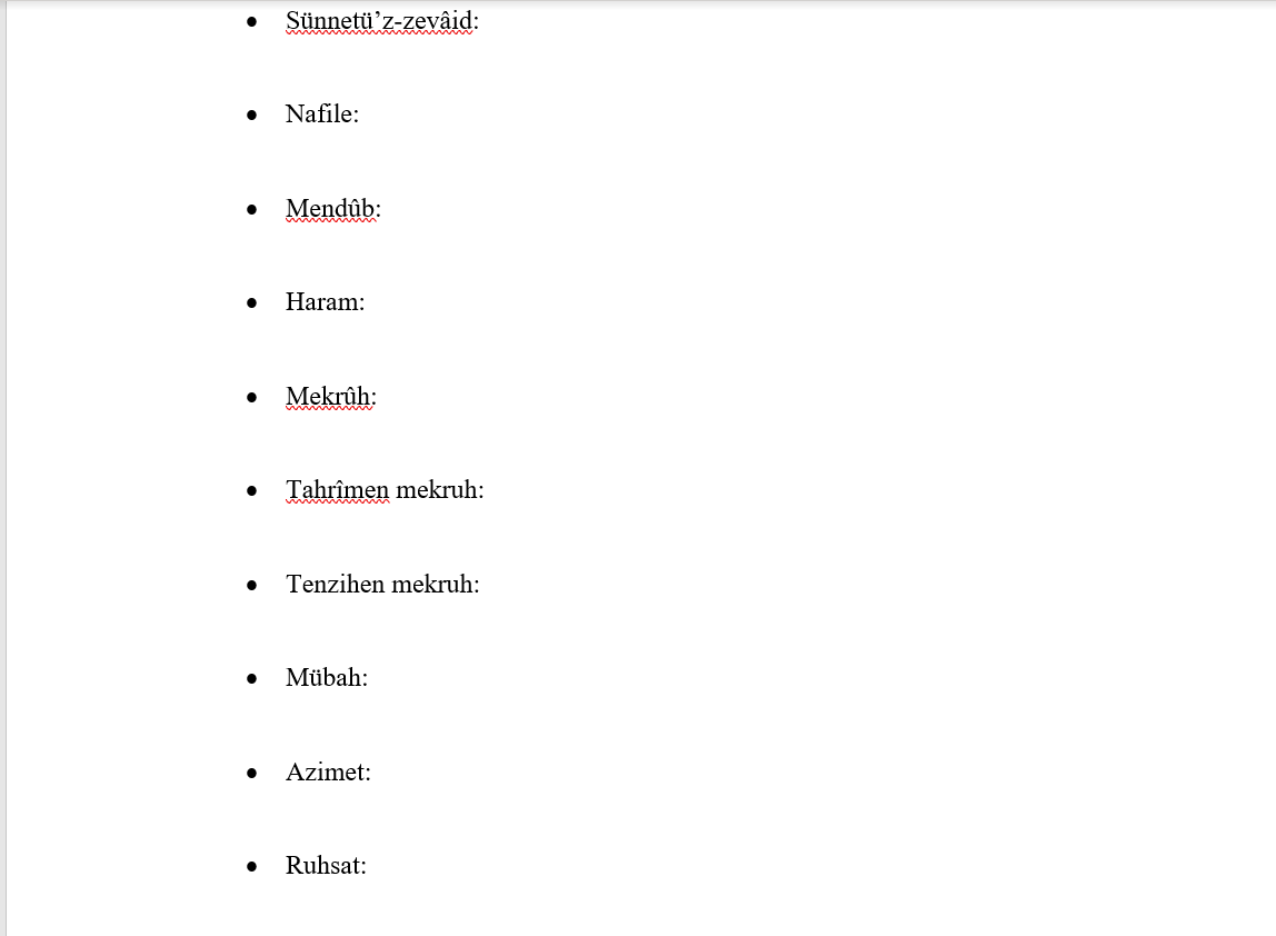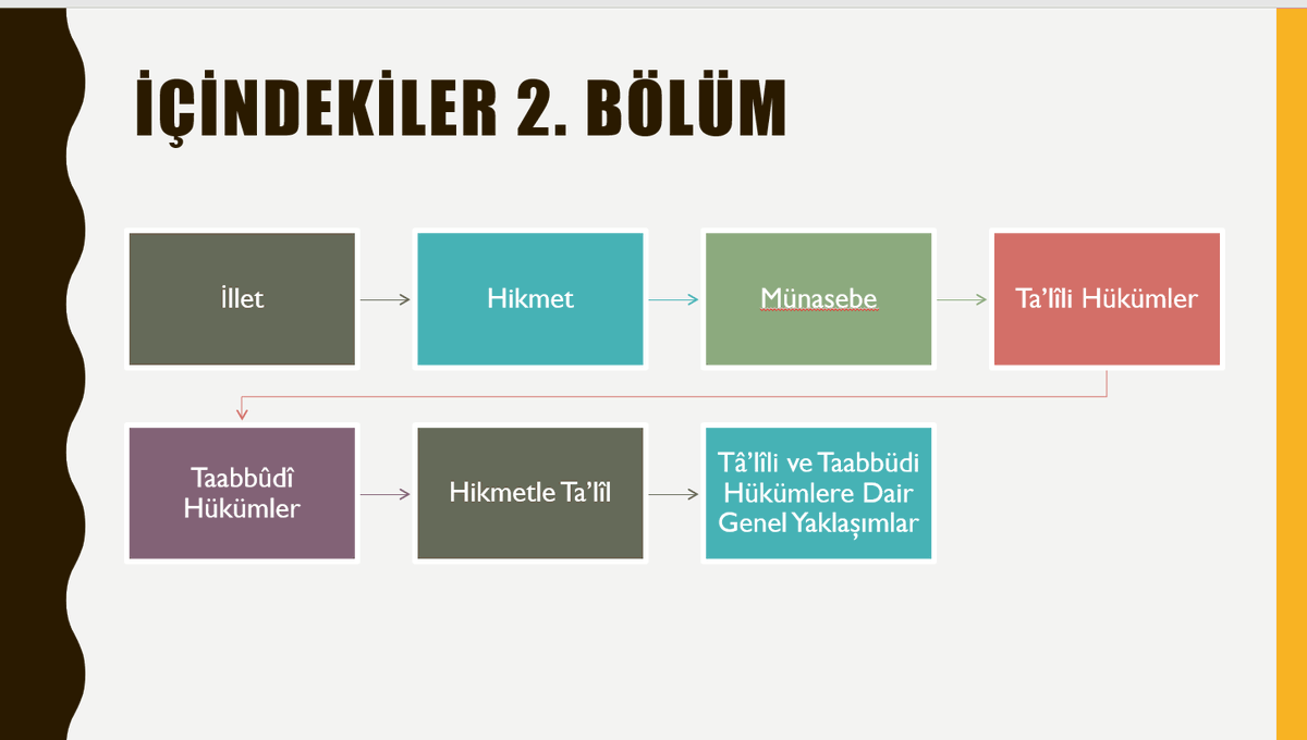 (Özellikle "Vacip" maddesini İ. Kafi Dönmez hocamızın maddede ve kitabında belirttiği gibi tablolu çalışmak pek mühim. Muhayee kavramı hukukla mukayeseli çalışılmalı)