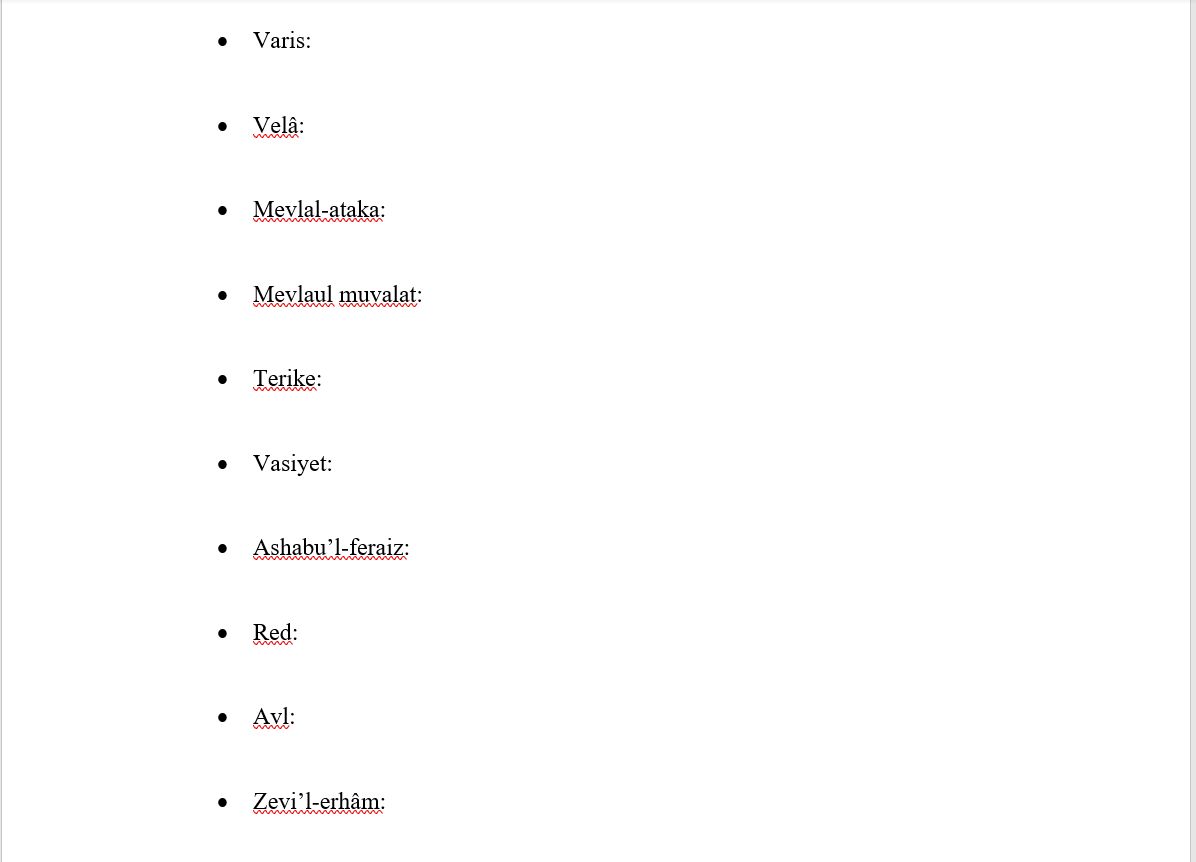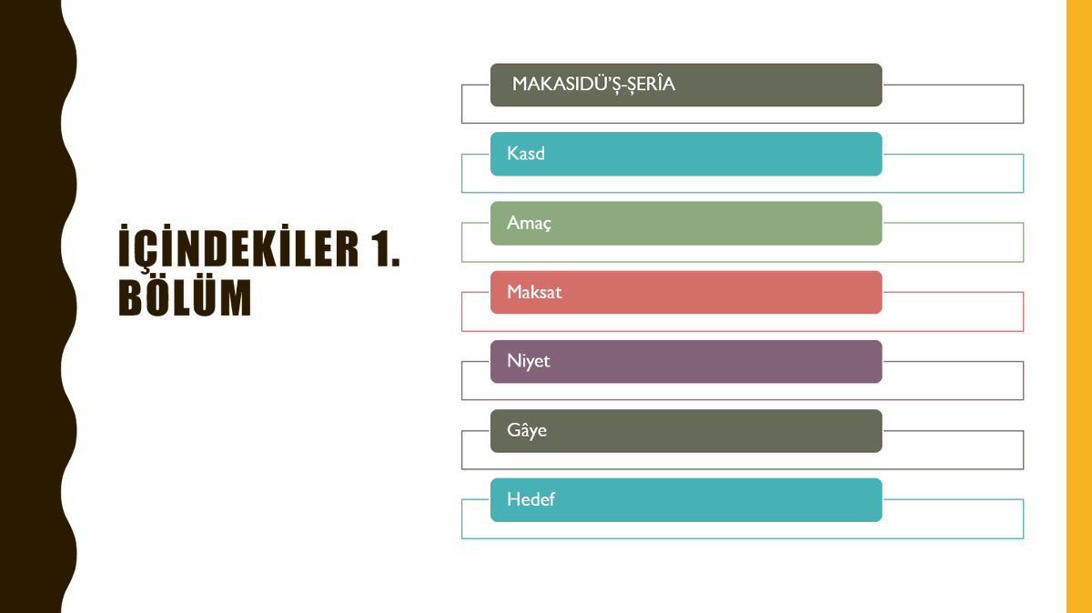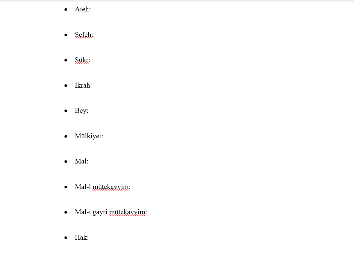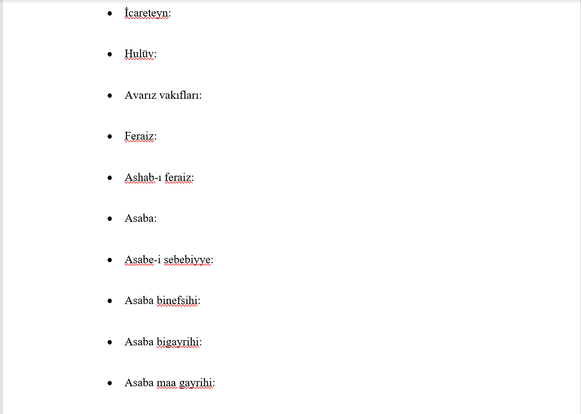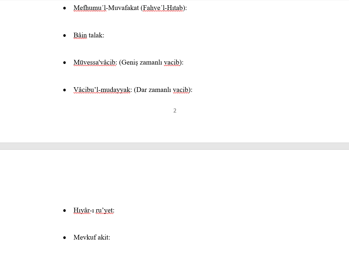 (Özellikle "Vacip" maddesini İ. Kafi Dönmez hocamızın maddede ve kitabında belirttiği gibi tablolu çalışmak pek mühim. Muhayee kavramı hukukla mukayeseli çalışılmalı)