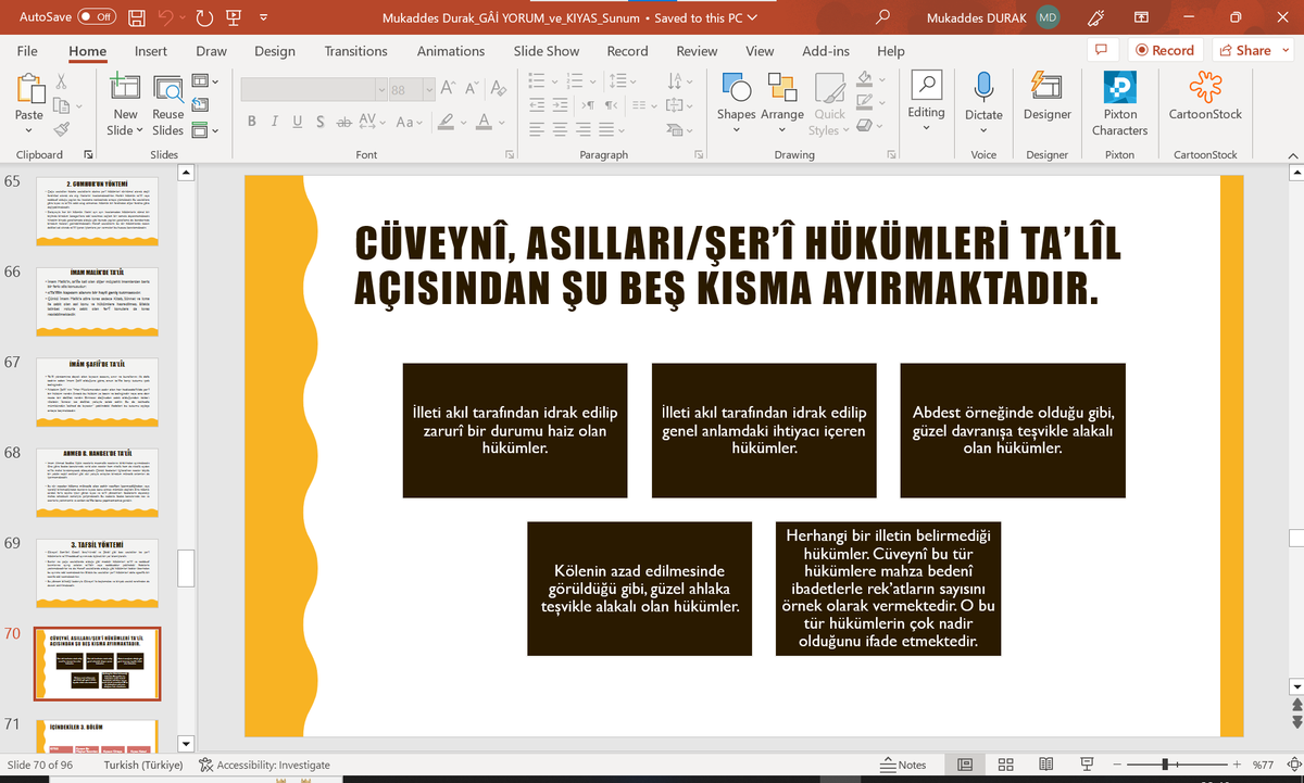 İ. Kafi dönmez hocamız gai yorum ve lafzi yorum tartışmalarına derslerinde çok önem vermekte günümüze yansımalarını da tartışmaya açmaktadır.