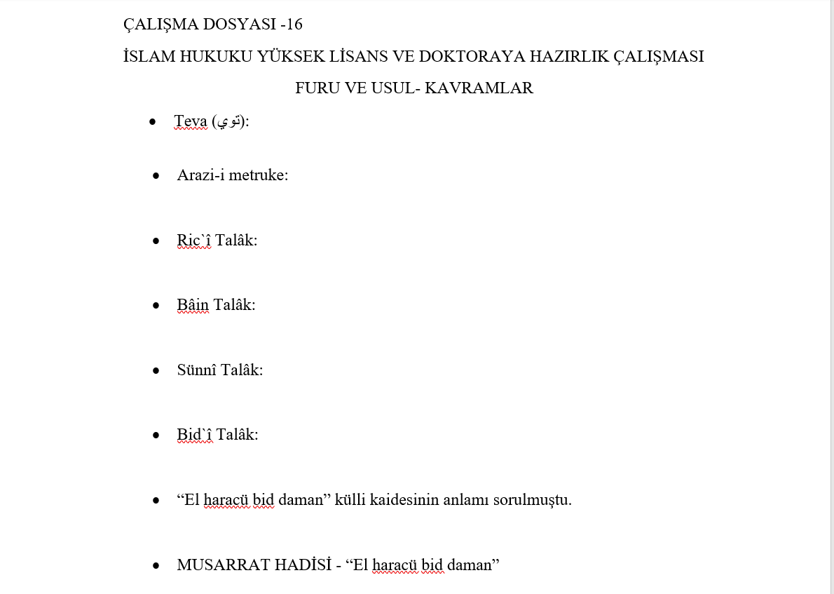 YL ve DR sınavlarında çıkmış ve çıkması muhtemel ıstılahlar.