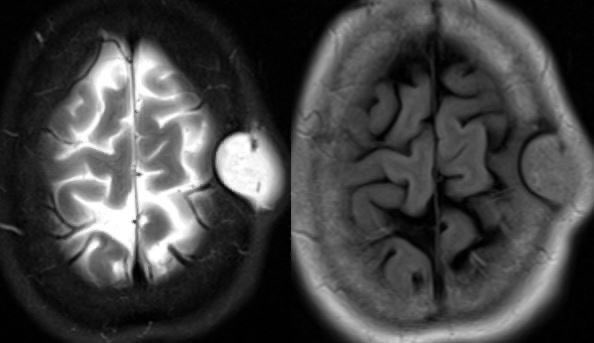 ▶️Classically appear as a cortically based mass with cyst and enhancing nodule and overlying DURAL TAIL or enhancing leptomeninges