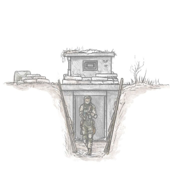 boxes, anti-vehicle barriers, artillery positions and large minefields.