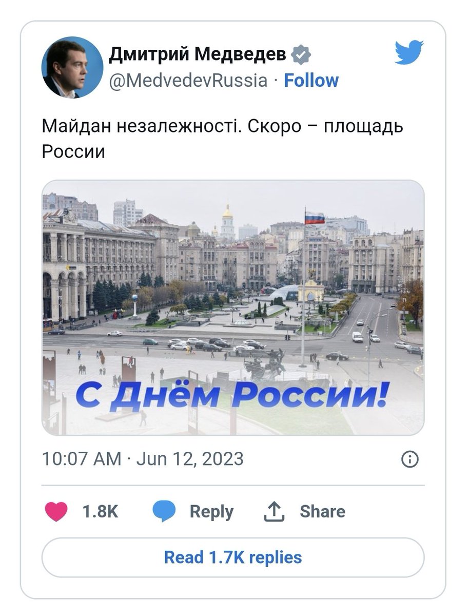 Medvedev wrote: "Maidan Nezalezhnosti." Soon - Russia Square. 👇
