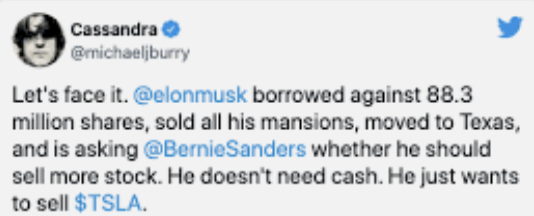 Burry predicted Tesla stock would collapse like the housing bubble, saying that: