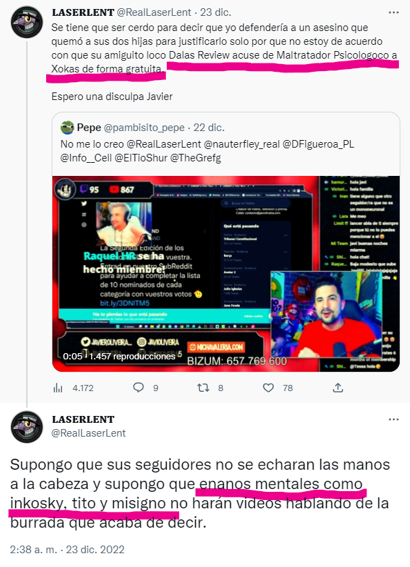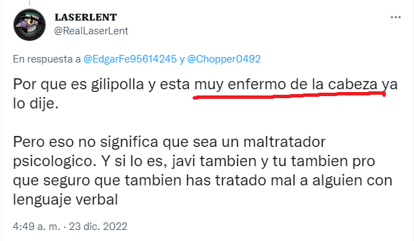 Luego de la nada insultando a @elfustin , @PiensaOK y a mi de la nada llamándonos "enanos mentales" y diciendo que Dalas acusa al Xokas de "maltratador Psicológico" cuando en ningún momento dice esto en su video y en el debate con Javi tampoco lo supiste defender.