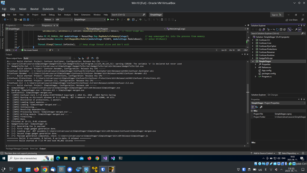 Finally, the SimpleStager with DInvoke, merged with ILMerge, obfuscated with ConfuserEx 2, and packed into JS with GadgetToJScript, bypassed Defender with my Cobalt Strike stageless DLL payload (of course built with custom Artifact Kit including advanced evasion features).