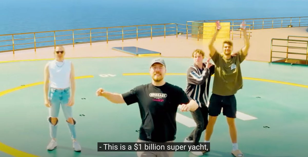 Now 90 seconds into the video, we start to get a lottt more of Jimmy + his friends (partly because the yachts are getting bigger with more to explore). The audience's parasocial relationship with these people is a strong reason many keep coming back. 13/