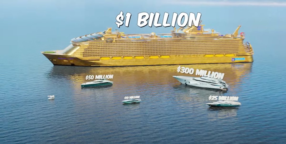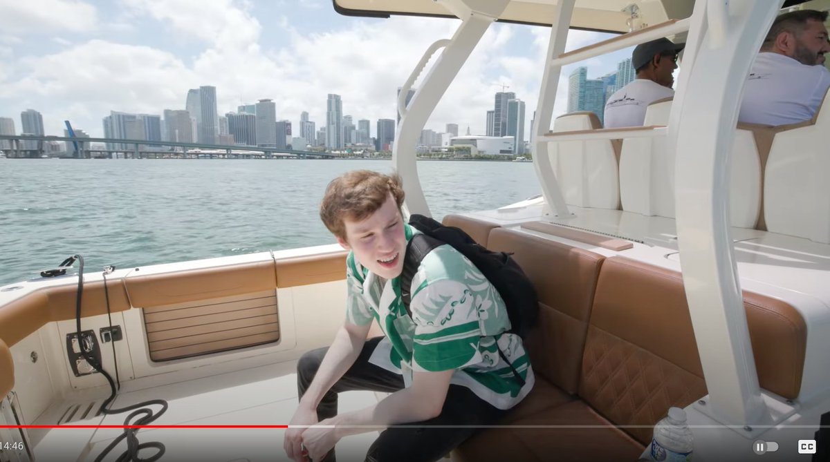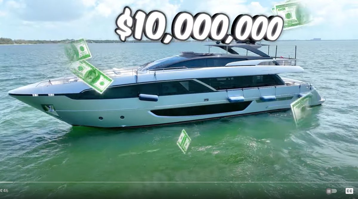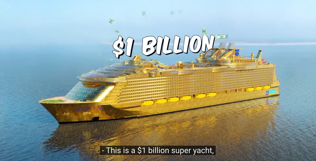 He doesn't introduce himself or give a long-winded preamble. The instant the video begins, he yells "this is a 1 billion dollar super yacht," with a drone camera zooming out + graphics to make the yacht look gold. You're immediately in the video. 3/