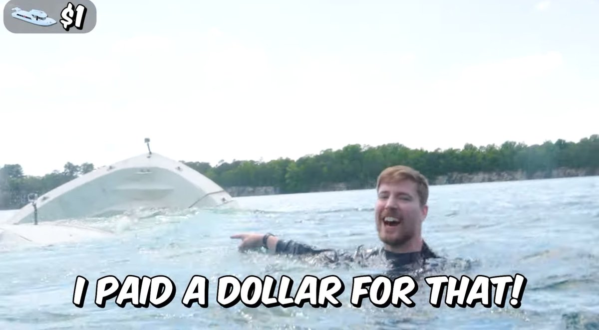 The title promised a $1 yacht, which is certainly a headscratcher. We get to that $1 yacht just 17 seconds into the video. @MrBeast immediate addresses the important question: why is it $1?