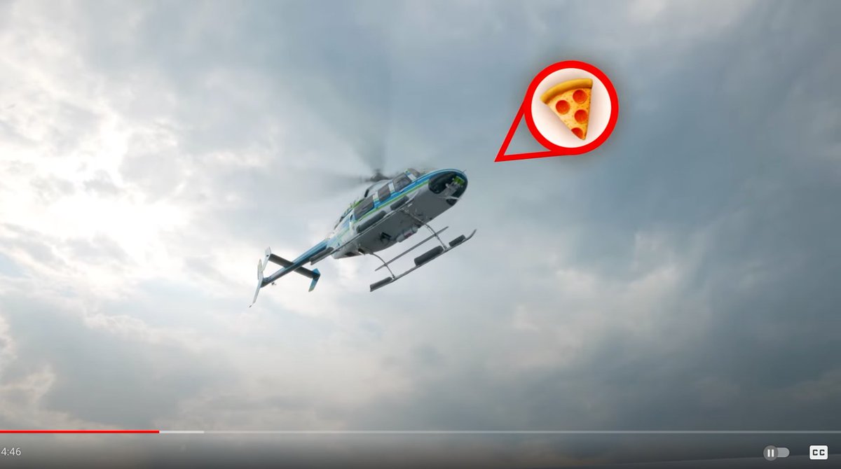 It can't JUST be boat tours for 14 minutes! So now they're riding jetskis and trying to catch pizza thrown off the boat. And it's fun! And silly! And keeps you engaged! 20/