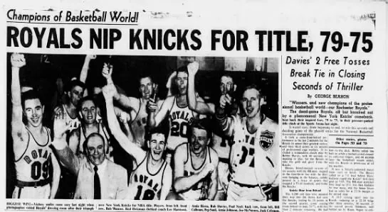 Los Royals ganaron los tres primeros partidos de las Finales de 1951. Los Knicks lograron revertir la historia al ganar tres en fila por márgenes de seis, tres y siete puntos. Pero no fue suficiente: Rochester ganó el 7° y fue campeón.