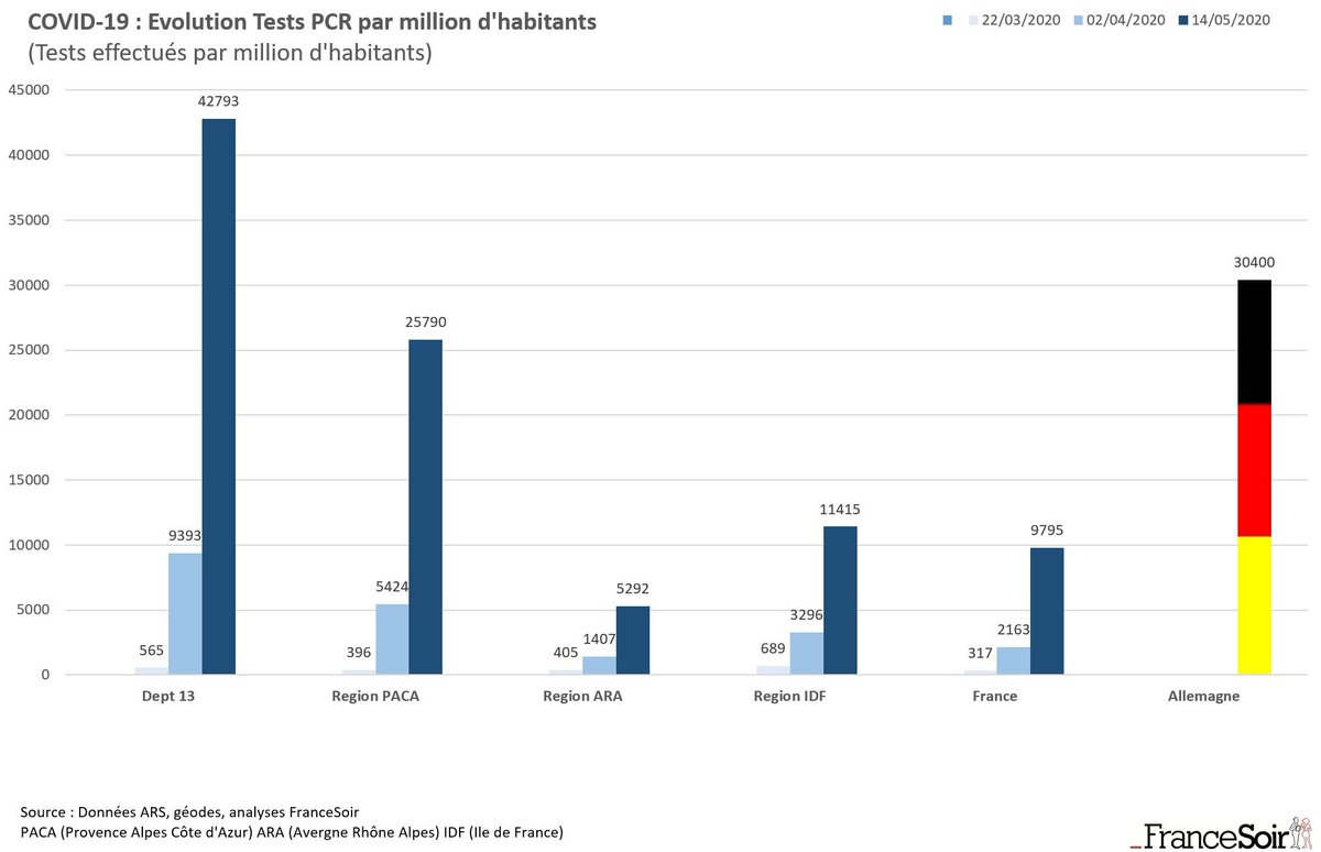 - Le 13 a pratiqué plus de tests qu'en Allemagne.