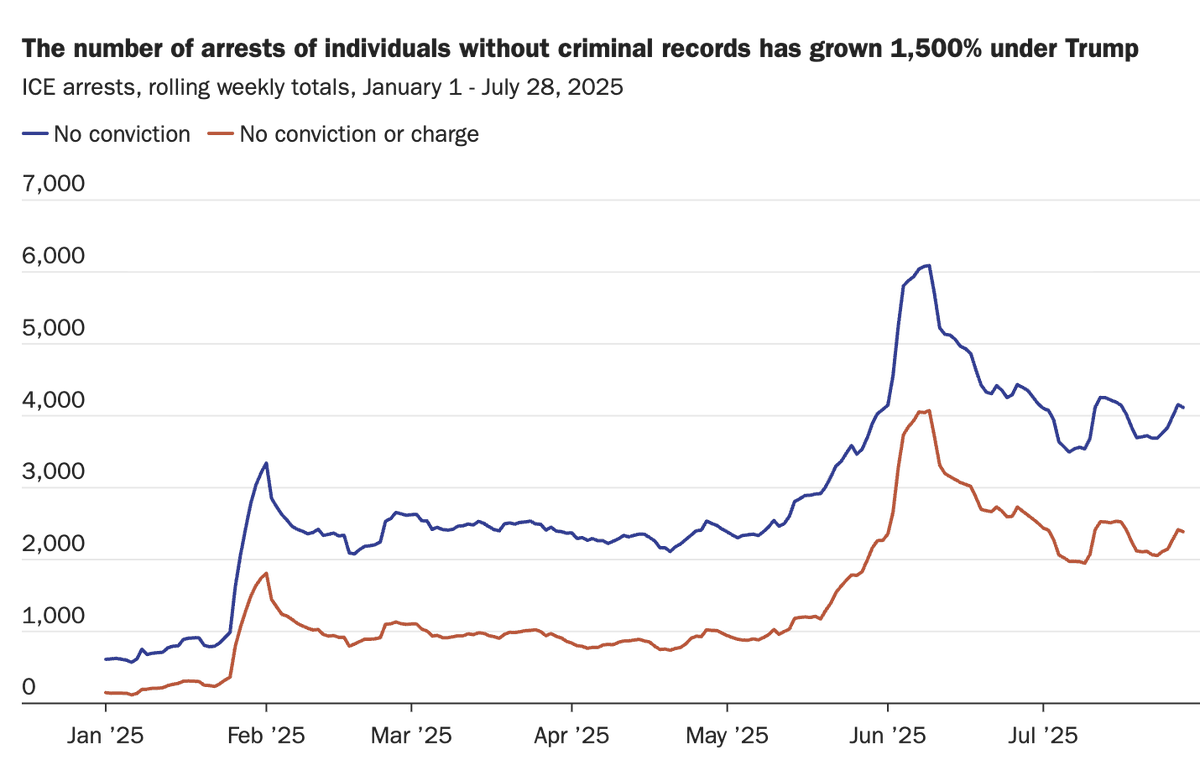 1/2 of detainees had no criminal conviction or even pending charges, which are often minor and do not end with a criminal conviction. ICE often arrests these people, actively thwarting their ability to clear their names cato.org/blog/5-ice-det…