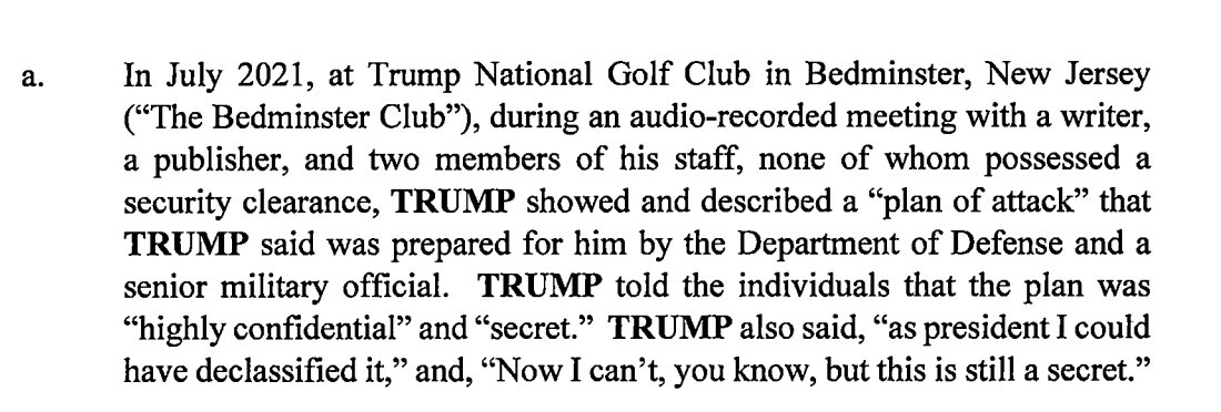 5. In Trump's case there is literally an audio tape where he admits he knows a document is classified national defense information and shows it to people with no security clearances anyway