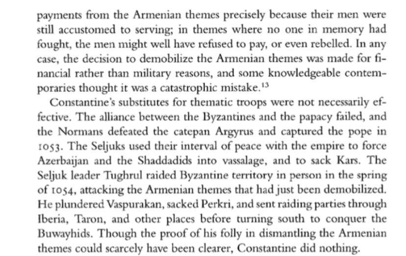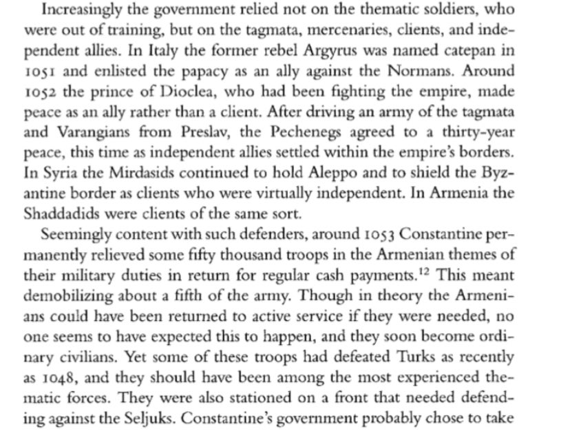 Byzantine cultural & economic output during this period is huge; however, dynastic difficulties & corrupt imperial courts drained the treasury & enacted unsound policies. We’ll focus on the downstream effects of this which made the famously resilient Byzantine military so brittle