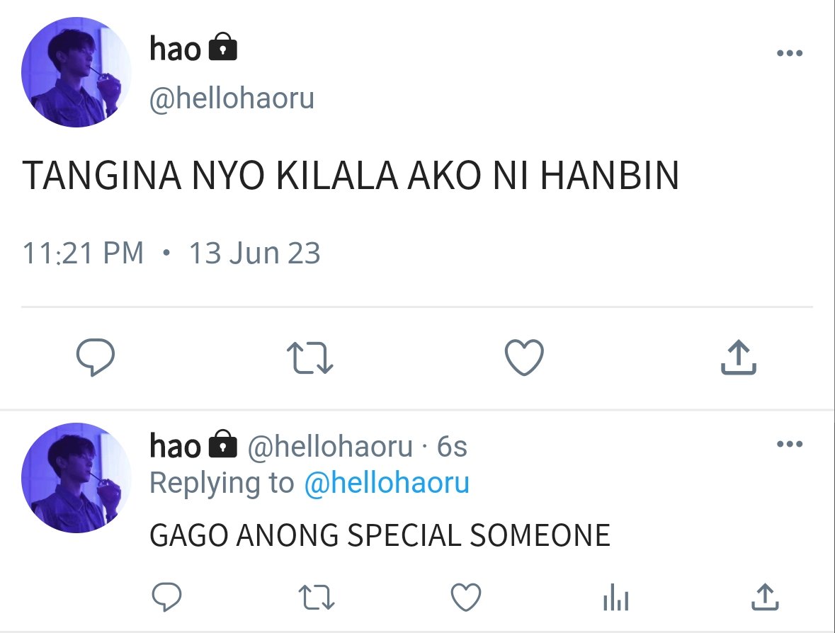 a #haobin few tweets au where hao finds comfort by watching a random guy's ig live every tuesday, not until shb mentioned him during his birthday live!
