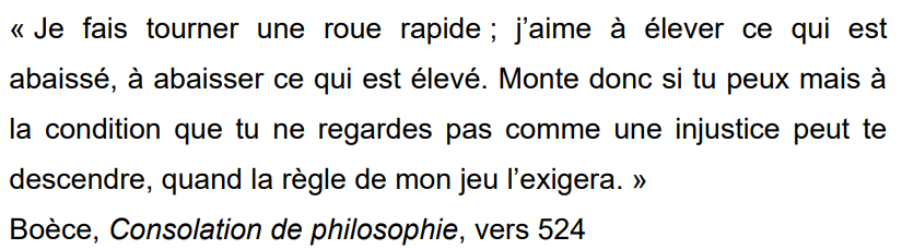 Cependant, pour la plupart des chrétiens de l’Antiquité et du Moyen Âge, ce progrès ne concerne pas le monde terrestre, qui reste empreint par le mal depuis le péché d’Adam et Ève. Sur Terre, c’est la «roue de la Fortune», legs de la pensée cyclique, qui domine les humains. 7/25